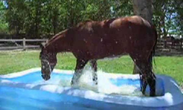 公爵, 一匹年輕的馬, 只是發現了孩子們的游泳池和玩水.