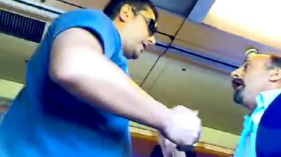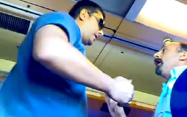KTEL 巴士上的視頻,兩名乘客和司機正在爭論...窗簾.