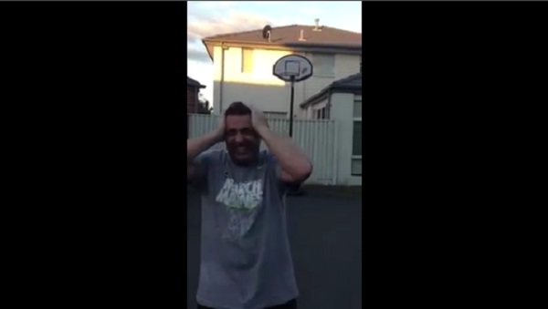 在澳大利亞, 一個女孩造成他的父親到一個大的賭注. 如果在拍他的背對籃筐的 eystochisei, 同意不會再問錢. Soytarei 爸爸, 不包含任何原件, 但球會蹦蹦跳跳到柵欄和進入籃子!