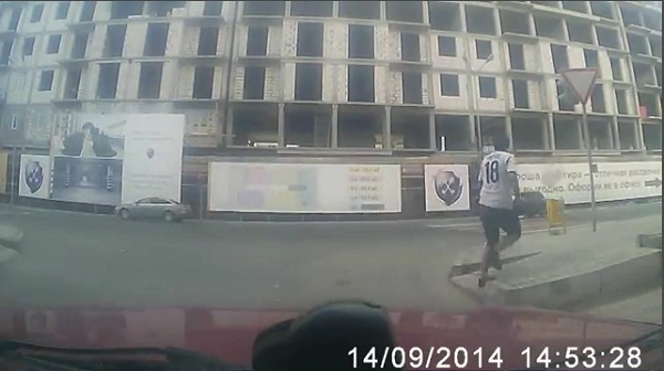 一位等待很長的時間,在紅燈處的波蘭司機, 有一個邪惡的想法: 走出他的車和行人按下按鈕的燈籠.