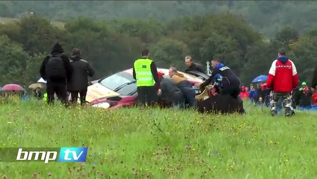 在德國拉力賽 WRC 集會期間, 納賽爾 · 阿勒進溝裡車禍. 指南 》 要求幾個觀眾來説明他恢復, 但空間安全團隊不允許他們. 觀眾最終將承受動態及將剝開這輛車.