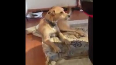 一隻小狗設計了一種有趣的方法來強加一個更高的狗. 他用兩條腿站立,並且...