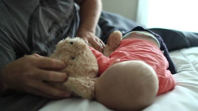 爸爸必須放在嬰兒床上睡著的寶寶,