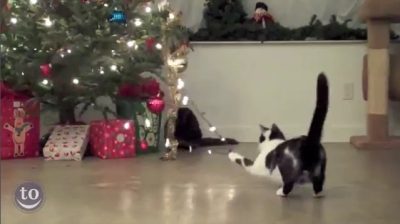 貓有偉大的愛情的聖誕樹, 並總是試圖 chwthoyn 裡面, 爬樹和玩耍的裝飾物. 一個有趣的貓進行攻擊和摧毀修剪的樹木的集合, 從柴可夫斯基的 《 胡桃夾子 》 的背景音樂.
