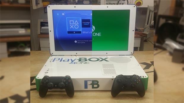 埃迪 Zarick 剛剛建了 PlayBox 4one, 內置的螢幕,設有一個 PS4 和 Xbox 一個主控台. 為此即興的建設, 想要以筆記本電腦和 22 英寸屏幕的形式結合兩個最新一代的控制台, 1080p 分析. PlayBox 4one 主控台包括兩個乙太網埠和 HDMI 埠. 主控台的選擇是通過設備背面的開關.