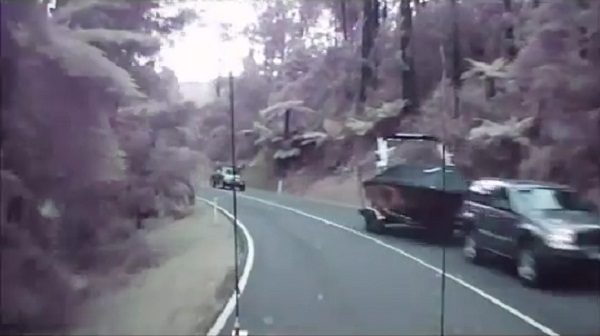 因為它會導致在澳大利亞維多利亞州的一條路, 一位司機避免從一系列由於強風在他面前土崩瓦解的樹木被淹沒的運氣.