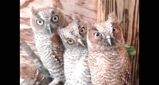 每當接近她的老闆, 這只貓頭鷹做了個奇怪的鬼臉.