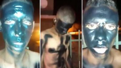 在巴西, 一名員警抓住了兩個年輕人做鄰居牆上塗鴉. 懲罰他們, 決定用黑色噴漆在臉上繪畫, 頭髮和身體.