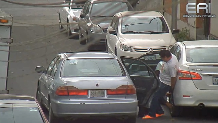 裝個保安攝像頭捕捉到車輪小偷在行動, 在布埃布拉的一條街道, 在墨西哥. 他們的車的門背後隱藏著, 他們擰開,然後嘗試刪除從一輛停泊車輛的車輪螺母的男人. 護衛員的一家私人公司在這一點上干擾他們試圖阻止他們的摩托車. 不幸的是, 小偷將設法與他們的車逃跑, 沒有猶豫,按一下,花在警衛. 案件被交給員警.