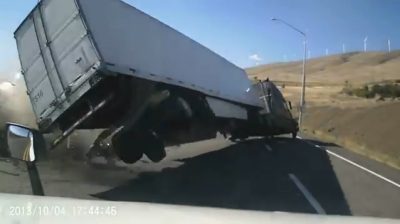 指南通過奇跡,避免了在高速公路失控的一輛重型卡車.