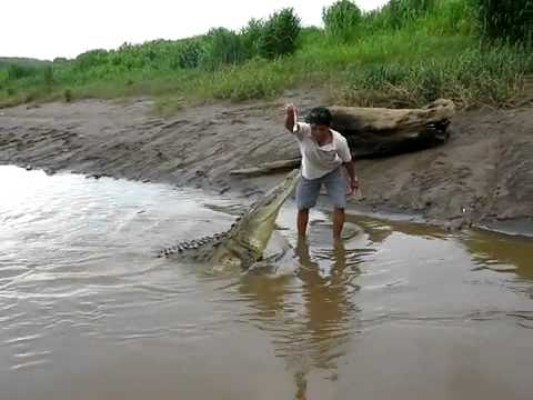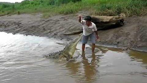 本地人在哥斯大黎加飼料可怕的鱷魚