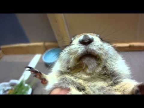 可愛的水獺吃.