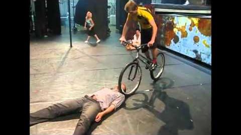 一位演出者 Johannes Stötter 使人體彩繪在三種模式, 加入他們的身體創造一隻咆哮的狼.