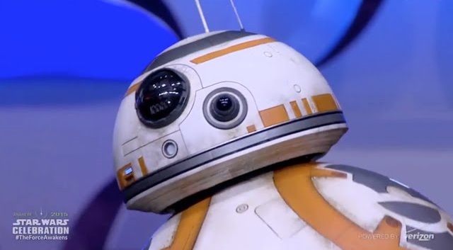 BB 8, 我們在新的《星際大戰》預告片中第一次看到的機器人: 原力覺醒”, 工作,事實上. 這是他在導演 J.J. 的「星際大戰慶典」節上的演講. 艾布拉姆斯.