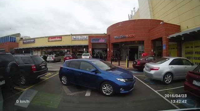 2015 年 4 月 23 日, 在威城的威廣場購物中心停車場 (澳大利亞, 墨爾本), 一個女人想停她的車. 完成此操作需要 3 分鐘以上和多次操作.