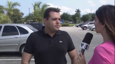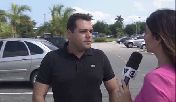 4 月 28 日,星期二,巴西瓜魯哈, 一群記者在電視直播廣播期間落搶. 記者 Jorge 塔季揚娜,伴隨著電視攝製組, 正在接受電視頻道「Tribuna TV」的採訪時,一名騎自行車的男子突然出現,手裡拿著槍.