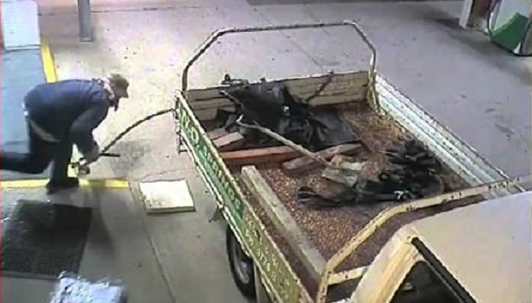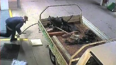 澳大利亞湯斯維爾市的警方公佈了這個視頻以查明一個強盜, 被盜的車輛使盜竊未遂的一台 atm 機在加油站.