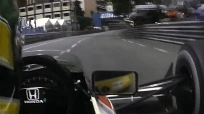 鏡頭從塞納在車內, 當他在1989年摩納哥大獎賽上一圈時. 摘自紀錄片《
