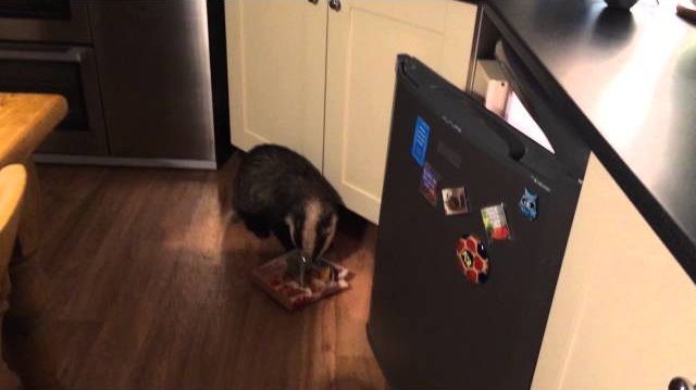 Midhurst 鎮在英國, 一個男人醒來在深夜裡的奇怪的聲音,在廚房裡. 當他去到那裡, 發現一隻獾吃一個餡餅,他發現在冰箱裡. 花了幾秒鐘,直到獾來實現,看著他, 看這個男人通過貓門逃走了.