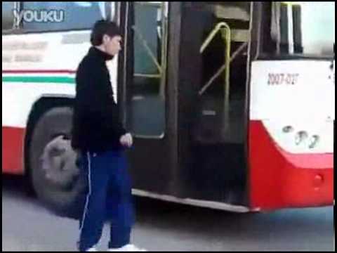 在一個加油站, 一個男人會用汽油裝滿袋子. 看到他的書包有洞,...