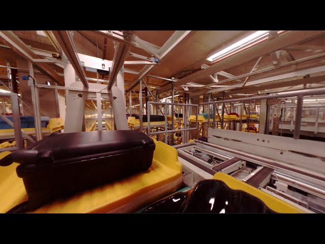 360 ° 鏡頭跟隨一個手提箱的旅程到汽車走廊, 機器人和電梯斯希普霍爾機場行李, 在阿姆斯特丹,荷蘭. 比過山車!