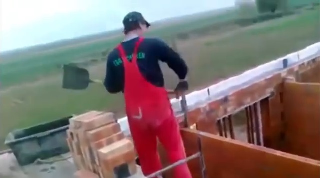 在波蘭建築裝修過程, 一名年輕工人有一種神奇的技術可以拆除他的...