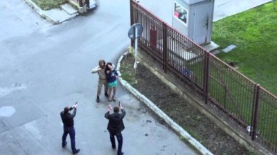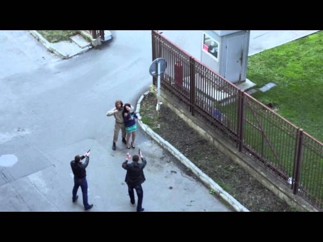 拍攝俄羅斯電視劇「Kvest」期間 (搜索) 在莫斯科, Paul Priluchny 演員有武裝的惡棍,威脅到生命的荷馬的作用. 突然而攝像機捕捉場景從上面, 一名士兵路過現場試圖解除演員以為這些都是事實.
