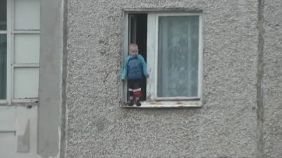 2015年9月21日,星期一, Miass 市俄羅斯居民看見一個小的孩子玩當他站在邊上的一幢大廈 8 樓的視窗. 他立刻打電話約十分鐘後趕到現場的員警.