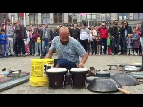 Dario Rossi 擊鼓在阿姆斯特丹 Damsquare 荷蘭. 最佳鼓手過?