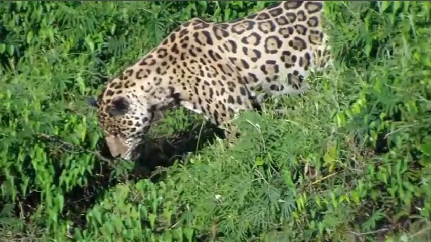 在巴西的潘塔納爾濕地區域, 美洲虎會使好的浸在河裡, 為了趕上它的獵物. 從水裡退出, 會在他的口中,一條大鱷魚的凱門鱷!