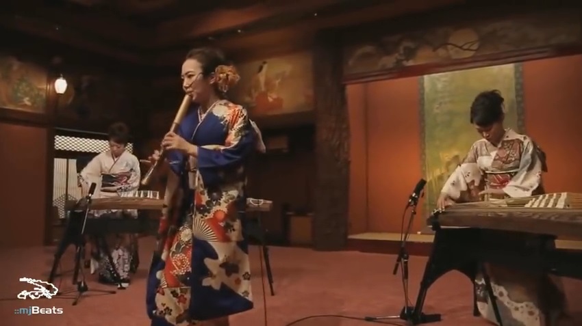 最專業的音樂家侑渡邊尺八 (竹笛) 和他的樂隊與兩個弦箏, 解釋的 Michael Jackson 知名的片斷, “犯罪高手”.