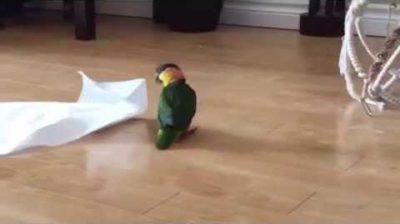 眾所周知是一隻貓需要一個盒子. 這只鸚鵡是聚精會神的看的只是一張紙巾.
