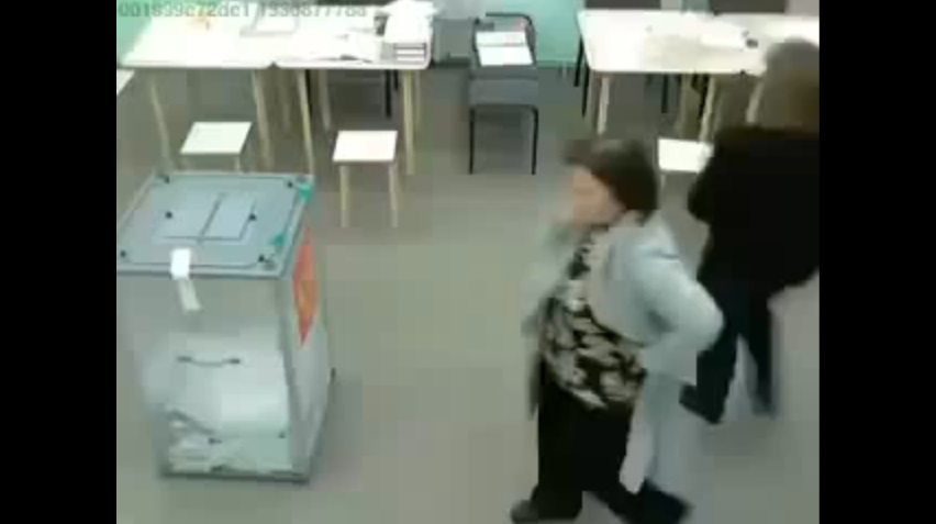 相機在克里米亞投票站投票記錄的結束後,一個奇怪的精力在2014年3月16日. 一個女人 (可能的監督委員會的成員) 編外地方投票贊成脫離烏克蘭在投票箱, 而另一個則站在前面「掩蓋」詐欺行為. 贊成分離的比例為96也就不足為奇了,8%.