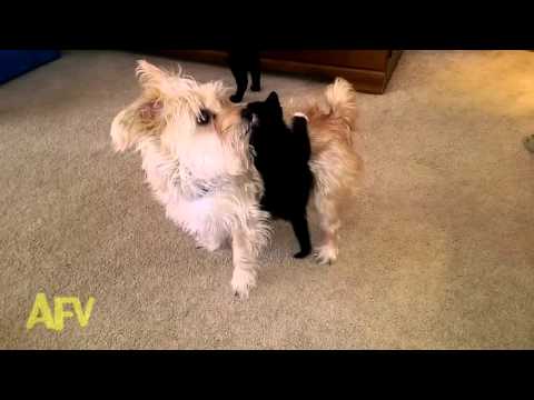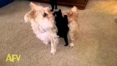 試圖播放爬上後面的一隻狗一隻小貓, 這似乎並不會享受它.