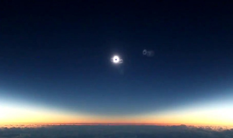 2016年3月8日,星期二, 阿拉斯加航空870號航班的機組人員和163名乘客, 有機會乘坐波音 737-800 從 10,700 米的高度觀看日食.