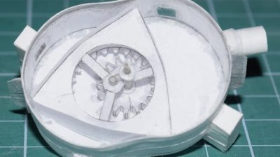他建了一個小的汪克爾轉子發動機從紙. 轉子可旋轉就像真正的, 壓縮空氣的説明.