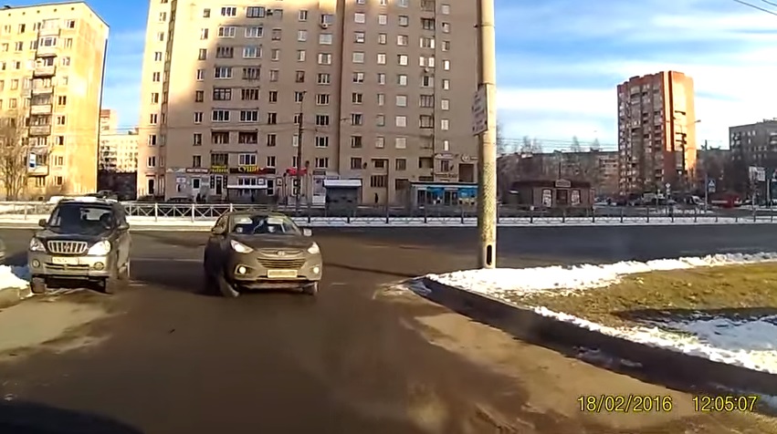 一個女人在俄羅斯恐慌期間第一次駕駛課, 併發送垂直方向上的金屬欄杆的分隔島車.