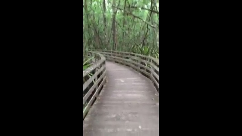 一天上午漫步在螺旋沼澤野生動物公園在美國佛羅里達州的聖所, 蒂娜已經看到了一隻鱷魚, 一條蛇, 一些青蛙和鳥類, 當她在某個時刻穿過一座木橋時…令她驚訝的是, 美洲獅接近奔向她.