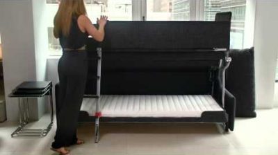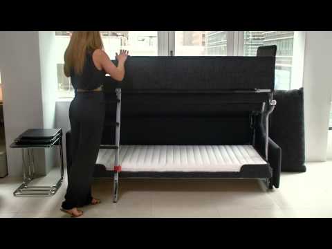 宮雙層床系統, 創新的設計,從沙發到一張雙層床的變換, 在最大化空間同時提供多種功能. 床是可用於低或高的扶手和配備木材板條床彈簧和可移動的床墊.