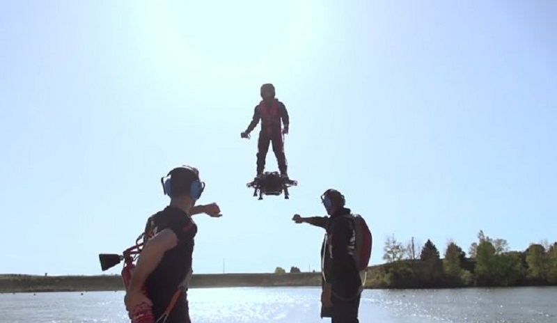 此演示文稿中的 Flyboard 進行了飛行湖, 出於安全原因,持續了不到 4 分鐘. 在視頻中使用的機器只是個雛形, 該設備預計將通過幾個測試和改善更多. 然而,該公司表示,該設備不會在 2016 年準備就緒.