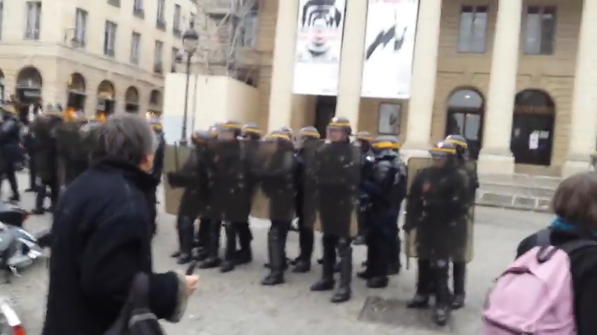 法國示威者反對新勞工改革喊出從圍攻 l Odeon 影院在巴黎 ’. 年輕人似乎用眾所周知的希臘語豐富了他們的口號…