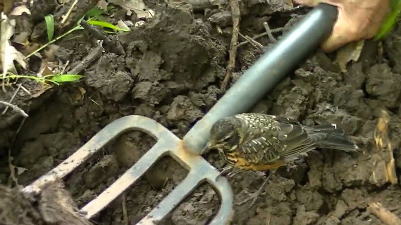 在沃新球衣 (美國), 一個人表明在哪裡找到依賴蠕蟲. 著個耙子, 挖他的花園,而羅賓耐心地等待搜索的美味的食物.