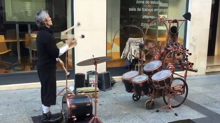 音樂家 Steel Beans 現場演奏他的一首曲目,