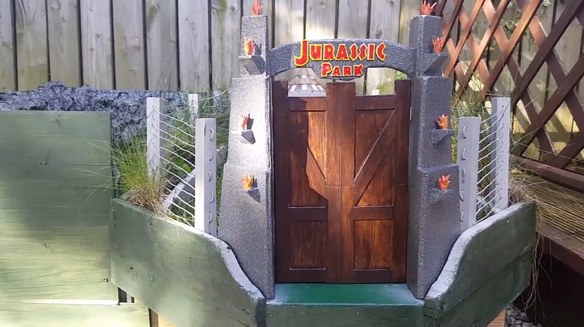 圖爾平奧利弗建在著名的侏羅紀公園電影龜的微型版本. 包含一個小湖, 自然土壤與草和網格就像在電影中電圍欄.