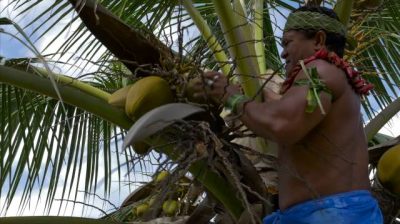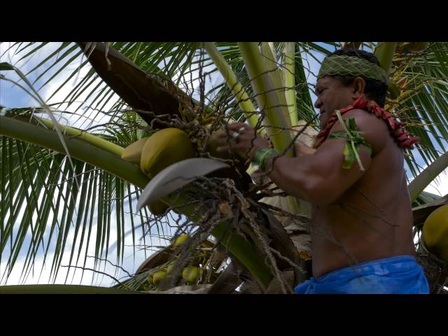 作為馬演示如何快速在一個椰子爬觀看汲水, 波利尼西亞文化中心.