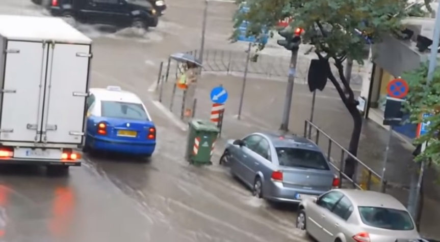 Taxidiaris 垃圾讓他騎在薩洛尼卡中心. Ekpliktoi 行人和駕車者看著桶到通行證 Tsimiski, 第一次「呼嘯」過紅燈時的汽車隊列後. 桶裡的旅程繼續白塔和海灘.