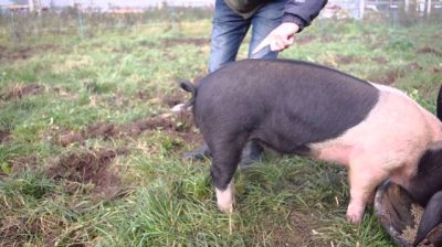 在 Stourbridge,英格蘭的農場, 一個男人向我們展示了一個簡單的技術,其中有人是能夠暫時拉直的豬尾巴. 拖動手指底部的後面的動物, 尾巴伸直神奇地在幾秒鐘後再返回到特徵形狀的之前.
