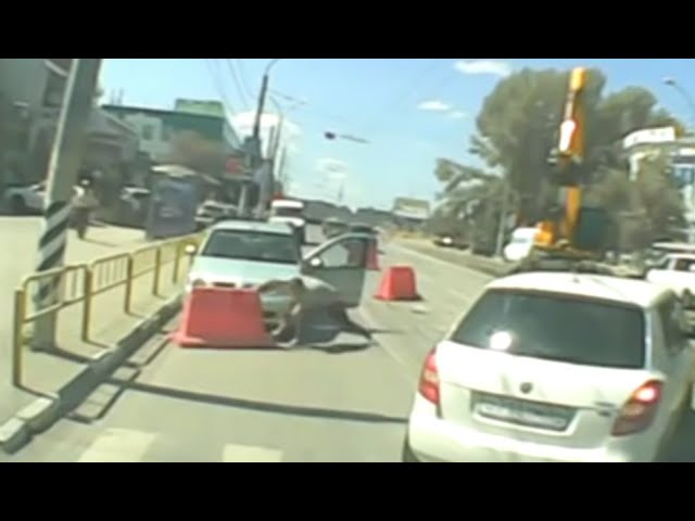 在俄羅斯的街道上,專案, 兩個司機進來非常滑稽的對抗. 誰會是贏家;
