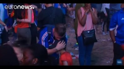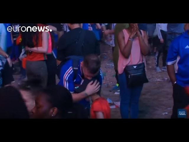 在 2016 年歐洲杯決賽中法國擊敗葡萄牙後, 法國的一切感到很沮喪. 一個小的孩子穿著葡萄牙的球衣去安慰和擁抱一個法國的追隨者,眼淚在眼裡打轉.