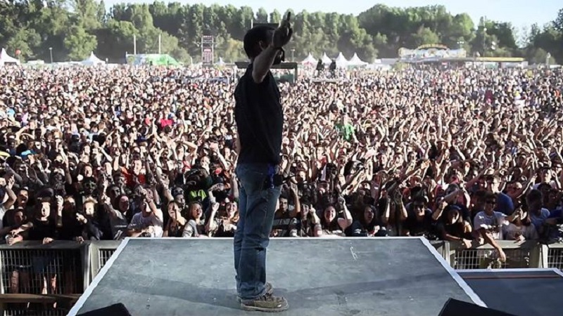 2016 年 7 月 2 日星期六,在法國馬爾芒德舉行的 Garorock 音樂節期間, 樂隊的照明技術員豪華革命並不想讓觀眾. 當他在舞臺上要檢查照明設置, 執行的姿態向信號燈和人們模仿他歡呼.